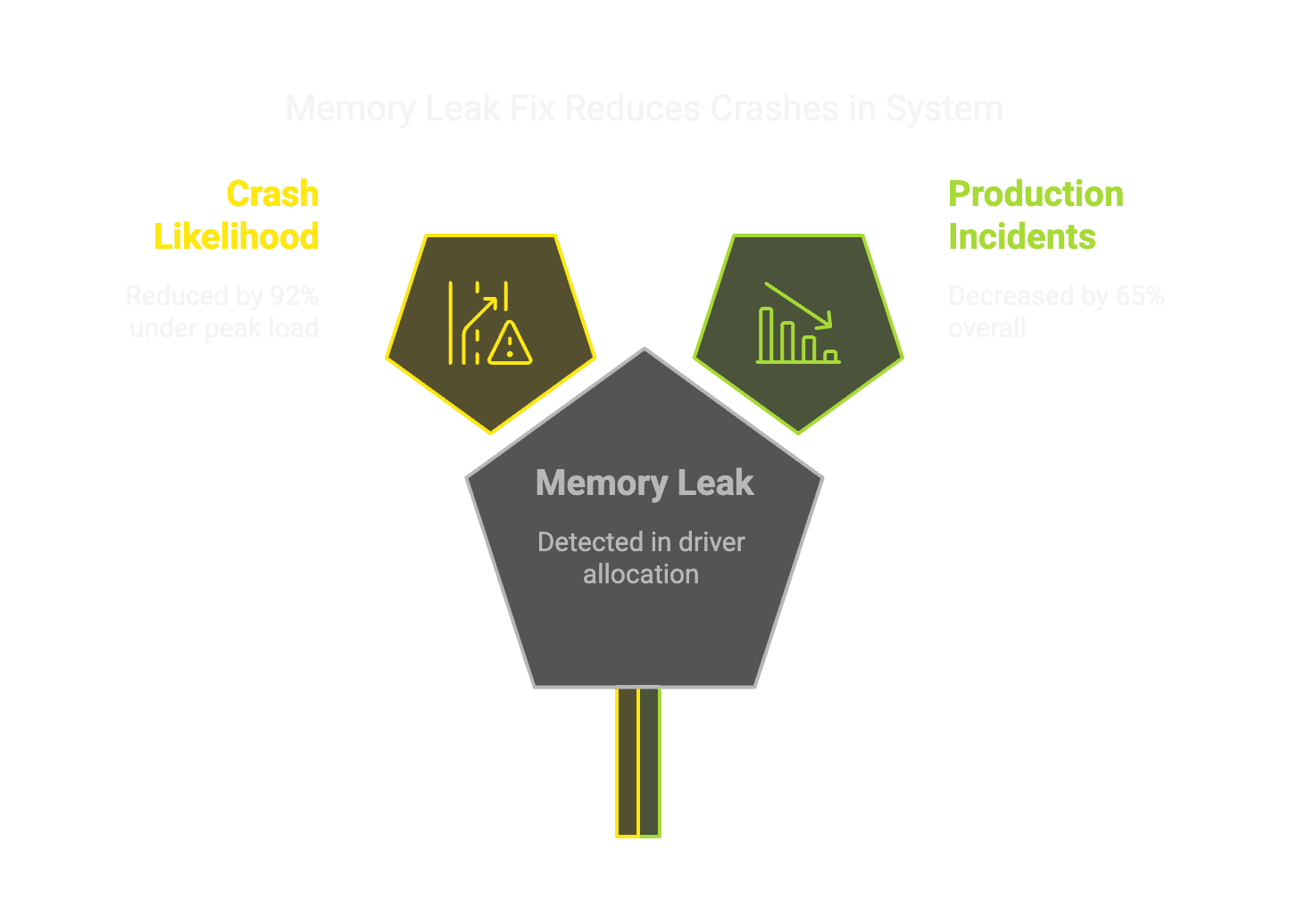free()calls to pointer operations The fix reduced production incidents by 65%4.