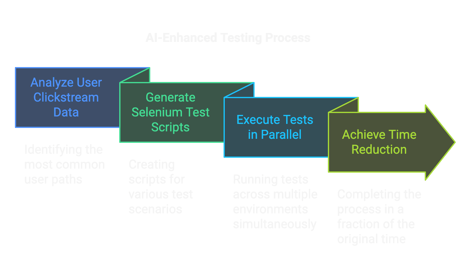 Executed tests across 18 browser/OS combinations in parallel This process, which previously took 14 hours manually, completed in 22 minutes with AI—a 38x speed improvement3.